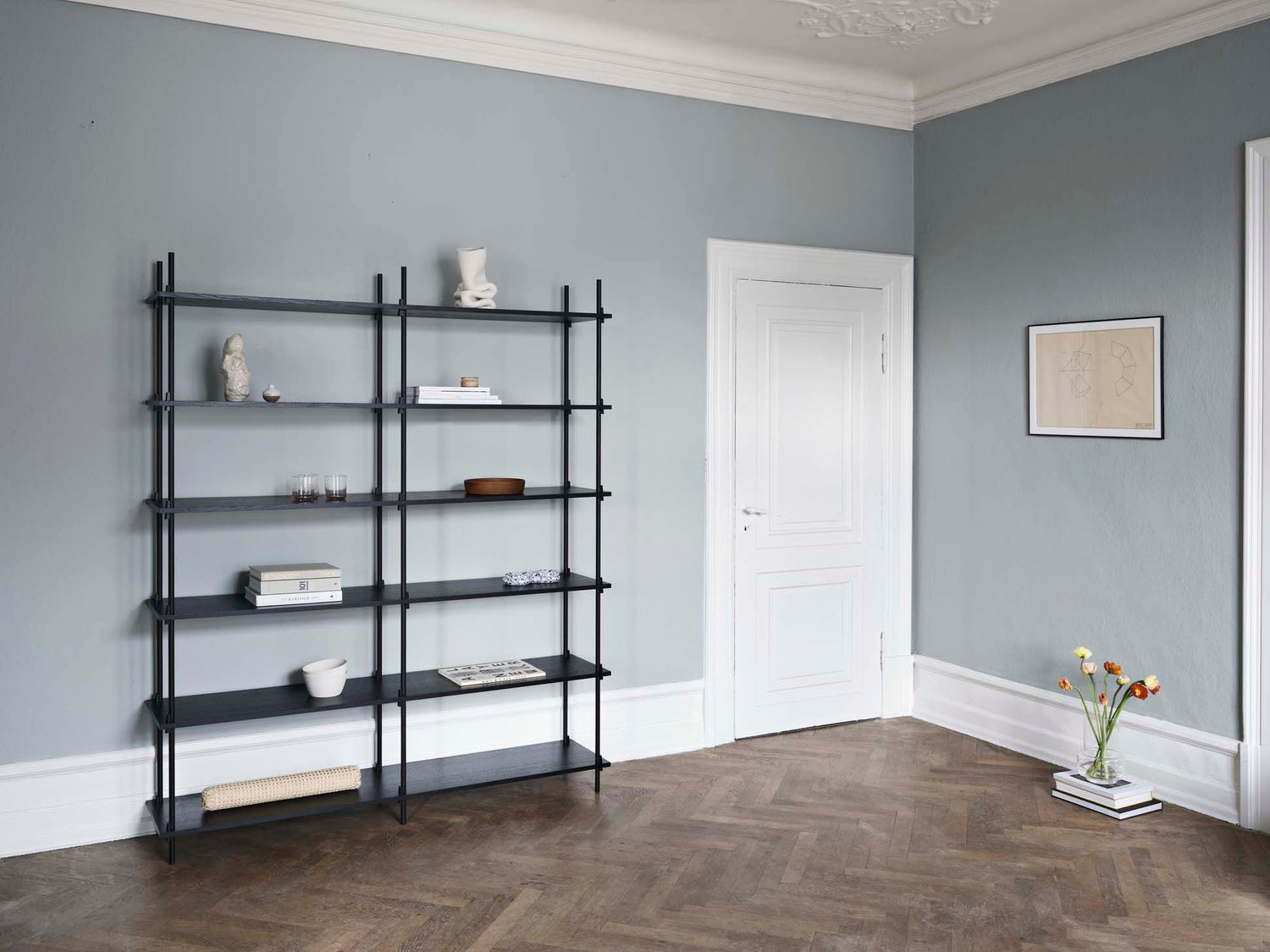 Deze design plankenkast van Moebe past in iedere ruimte. Je kunt hem tegen de muur als boekenkast of legkast gebruiken of middenin de kamer als room divider. Het kastsysteem van Moebe is modulair. Het is volledig opgebouwd uit losse onderdelen. En het kan dus keer op keer worden veranderd en aangepast. Alle planken worden op hun plaats gehouden door 4 wiggen in elke hoek. Het gebruik van wiggen betekent dat er geen positiebeperkingen zijn. Schuif de plank gewoon naar de gewenste hoogte en monteer de wiggen van onderaf.