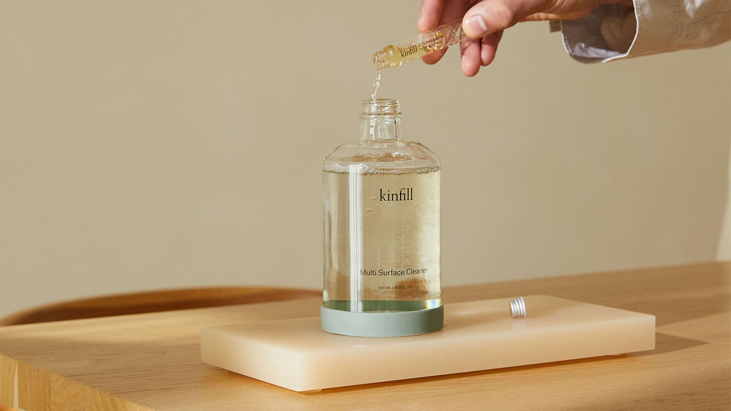 Kinfill is een innovator op het gebied van schoonmaakproducten met de missie om mensen aan te moedigen schonere gewoonten te creëren voor zichzelf en de planeet. De oprichter Reda Jouahri heeft daarvoor een prachtige lijn met de essentiële schoonmaakmiddelen ontwikkeld. Het assortiment valt op door het aanprekende esthetische ontwerp. Alle items zijn duurzaam, biologische afbreekbaar, vegan en vrij van dierproeven. Door ervoor te kiezen om met Kinfill schoon te maken verminder je ook nog eens de hoeveelheid afval die veroorzaakt wordt door plastic dat éénmalig gebruikt wordt. Kinfill biedt namelijk starterkits die een navulfles bevat en een geconcentreerd schoonmaakproduct. De flessen dragen heel toepasselijk de naam: Forever-flessen. Ze zijn gemaakt van Italiaans glas en bedoeld om voor áltijd te gebruiken. De recyclebare flacons met navulling komen in verschillende frisse geuren die gemaakt zijn van natuurlijke ingrediënten, conform de standaarden van Ecocert en Ecolabel.