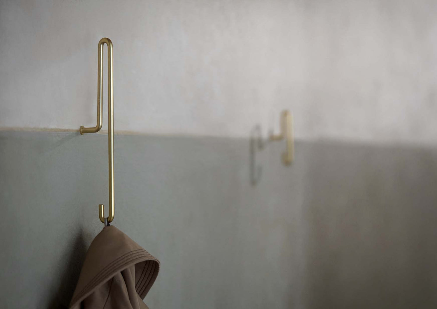 De muurhaak van Moebe is van gebogen metaal dat in één lijn doorloopt. Hij heeft twee punten waaraan je je jas, tas, sleutels of een handdoek kunt hangen. Grotere dingen kan je over de bovenkant hangen en kleinere zaken aan de haak die zich aan de onderkant bevind. De muurhaak kan worden gebruikt als één enkele haak maar is ook mooi in een reeks naast elkaar geplaatste haken. Ze worden geleverd in twee maten en drie afwerkingen, waardoor je eindeloos kunt mixen en matchen.