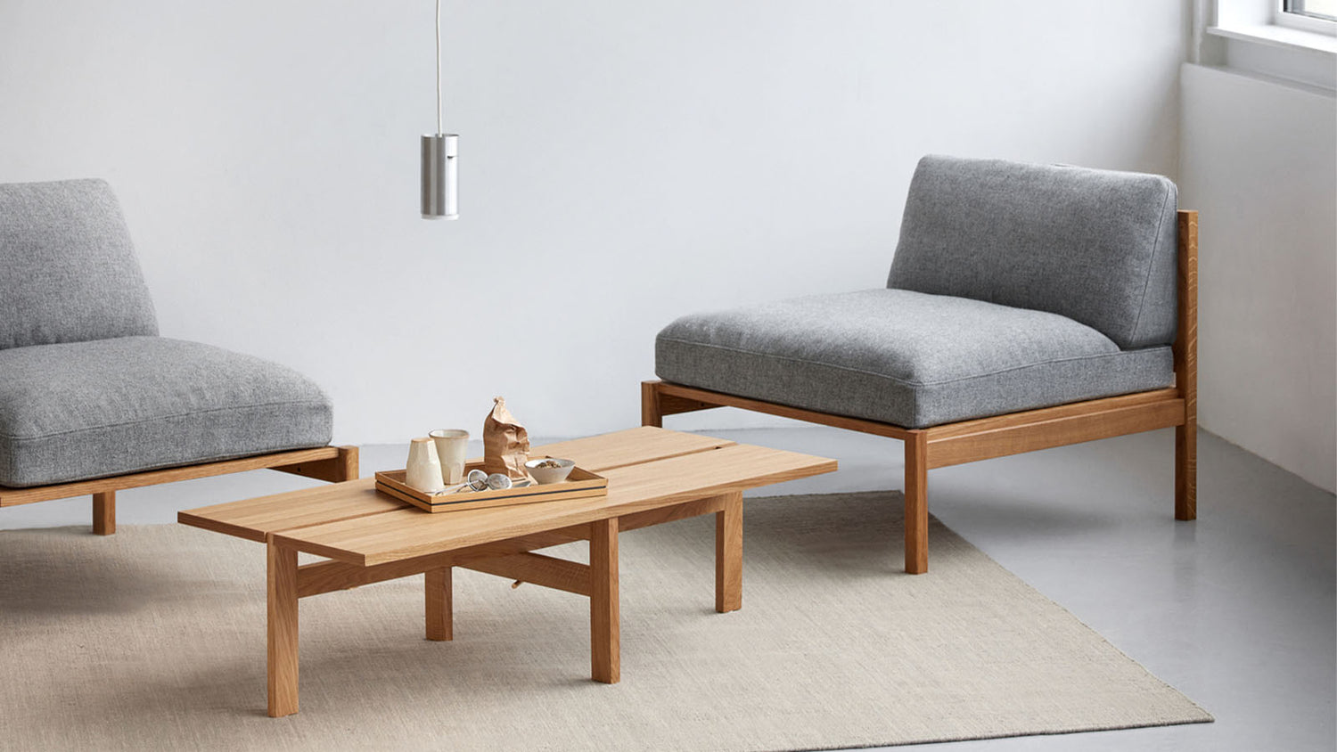 Deze rechthoekige salontafel voegt een Japanse tint toe aan de woonkamer en past nog steeds perfect in de Scandinavische esthetiek van Moebe.