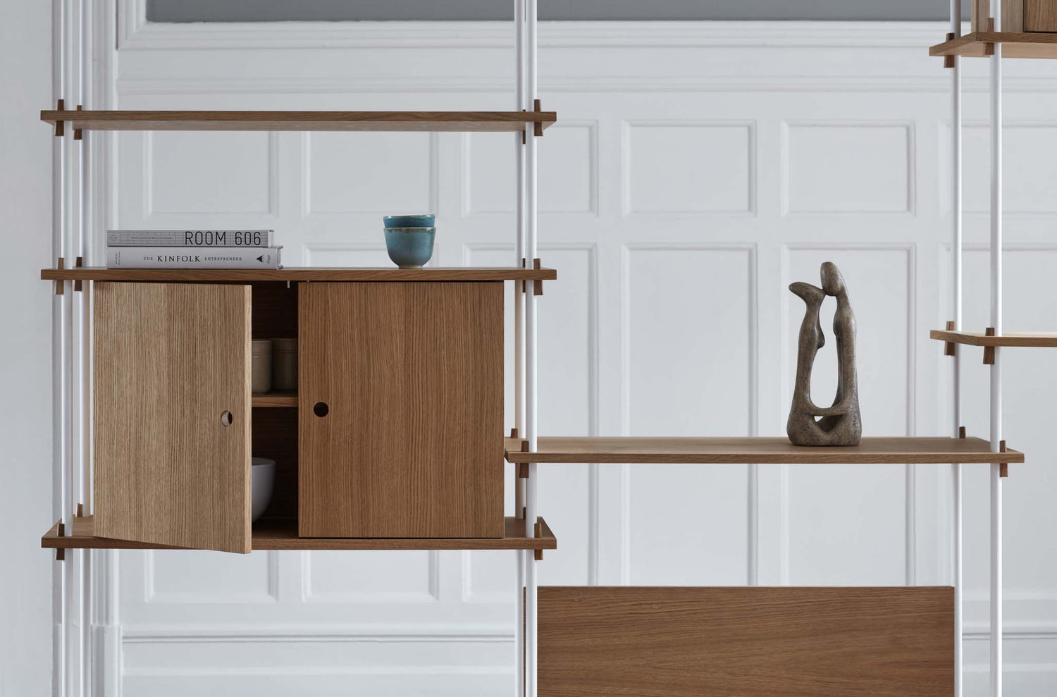 Het kastsysteem van Moebe geeft je de volledige vrijheid om je eigen meubelstuk samen te stellen en het precies aan te passen aan je behoeften. Maak het zo hoog en zo breed als je wilt. Voeg elementen toe zoals een roede, achterplanken, kastjes of een bureaublad.