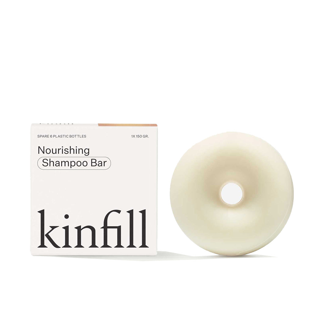 Deze voedende Shampoo Bar van Kinfill reinigt en hydrateert het haar en maakt het zacht en glanzend. Deze revitaliserende Shampoo Bar is verrijkt met de voedende eigenschappen van sheaboter en arganolie. De zeep heeft een mooie vorm van een halo. Het gat in het midden zorgt voor een betere grip. De magie van deze Shampoo Bar werkt echt op elke haarlok. Je zult nooit meer last hebben van 'a bad hair day'!