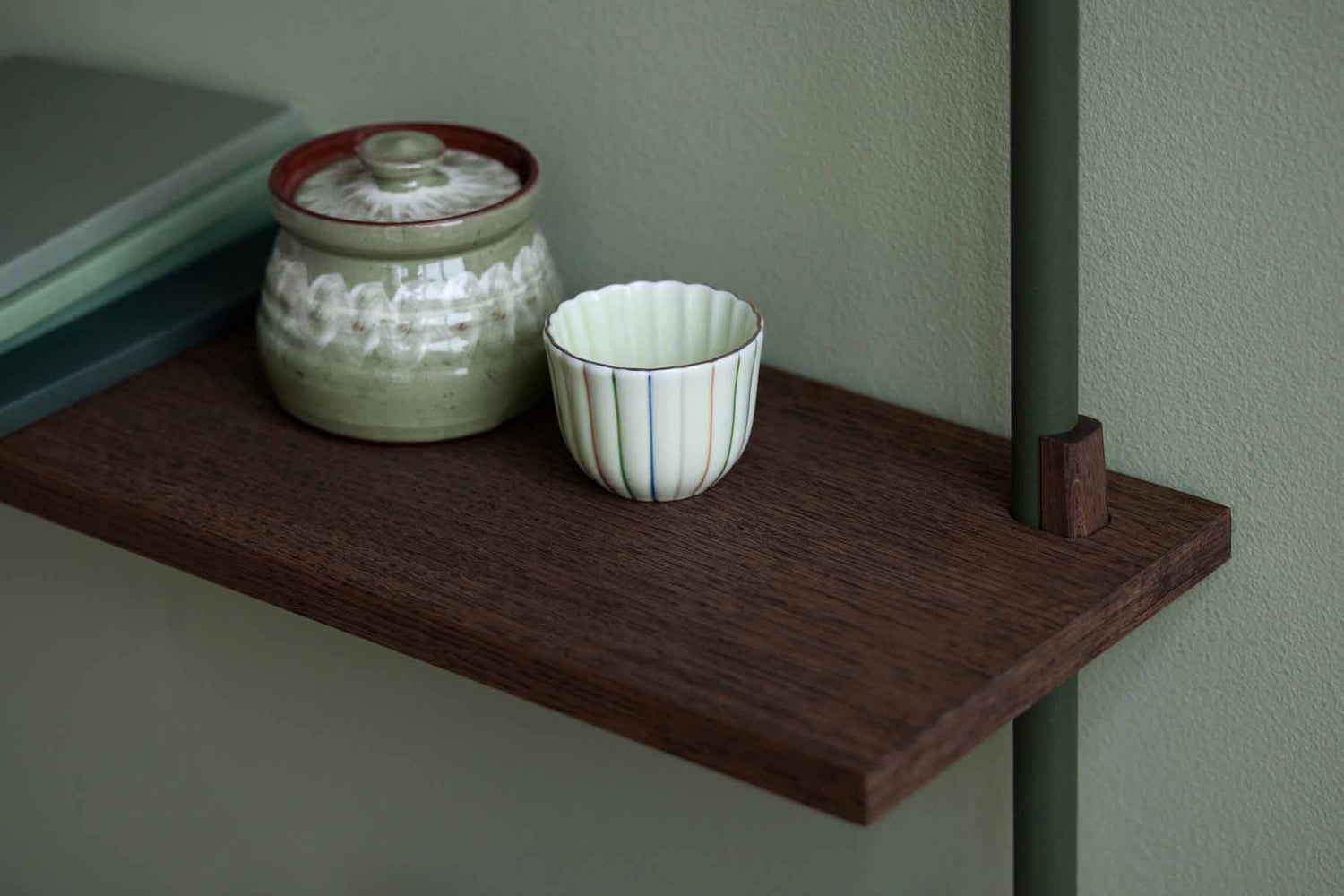 Het Moebe Wall Shelving systeem bestaat uit modulaire elementen waarmee je oneindig veel varianten van een wandrek kunt maken. Hierdoor is het mogelijk om op iedere plek voor iedere ruimte een efficiënt en mooi wandrek te creëren. Of dat nou een smalle gang, een keuken of een ruime woonkamer is. De planken kun je op iedere gewenste hoogte bevestigen. Ze worden op hun plaats gehouden door wigjes van massief eikenhout. Ook het kleurenpallet is zeer uitgebreid waardoor je creatief kunt zijn en je wandrek heel persoonlijk kunt maken.